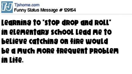 X says Learning to "stop drop and roll" in elementary school lead me to believe catching on fire would be a much more frequent problem in life.