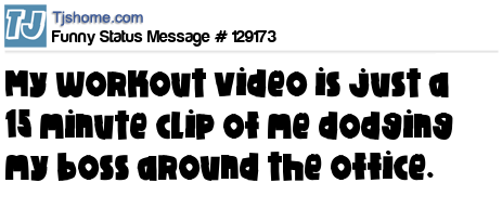 X says My workout video is just a 15 minute clip of me dodging my boss around the office.
