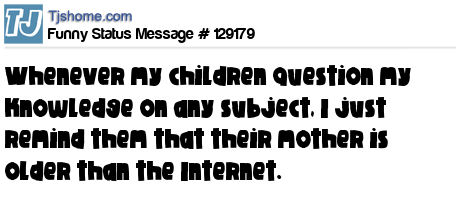 - # 129188 Whenever my son questions my knowledge on any subject, I just remind him that I'm older than the Internet.