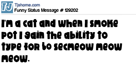 X I'm a cat and when I smoke pot I gain the ability to type for 60 secmeow meow meow.