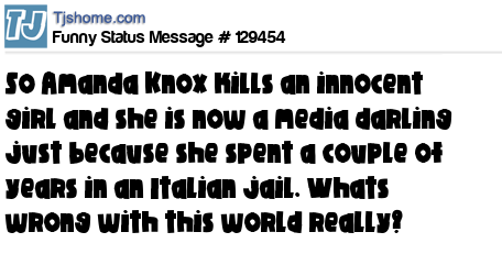 X says So Amanda Knox kills an innocent girl and she is now a media darling just because she spent a couple of years in an Italian jail. Whats wrong with this world really?