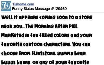 X says Well it appears coming soon to a store near you...The Morning After Pill. Marketed in fun filled colors and your favorite cartoon characters. You can choose from flintstone, gummy bear, buggs bunny, or any of your favorite Disney characters...