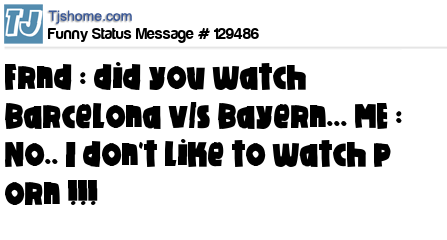 X is Frnd : did you watch Barcelona v/s Bayern... ME : No.. I don't like to watch p orn !!!
