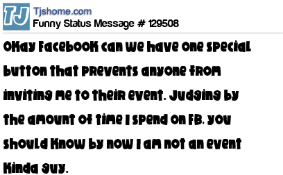 X says Okay Facebook can we have one special button that prevents anyone from inviting me to their event. Judging by the amount of time I spend on FB, you should know by now I am not an event kinda guy.
