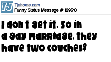 X says I don’t get it. So in a gay marriage, they have two couches?