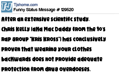 X says After an extensive scientifc study, Chris Kelly (aka Mac Daddy from the 90's rap group "Kris Kross") has conclusively proven that wearing your clothes backwards does not provide adequate protection from drug overdoeses.