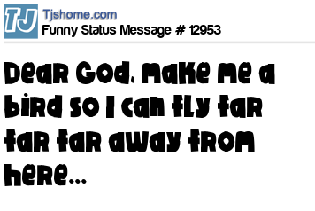 X says Dear God, make me a bird so I can fly far far far away from here...