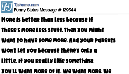 X is More is better than less because if there's more less stuff, then you might want to have some more. And your parents won't let you because there's only a little. If you really like something, you'll want more of it. We want more, we want more. You really