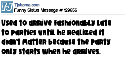 X used to arrive fashionably late to parties until he realized it didn't matter because the party only starts when he arrives.