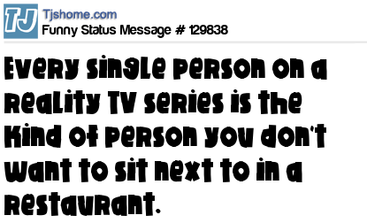 X is Every single person on a reality TV series is the kind of person you don't want to sit next to in a restaurant.