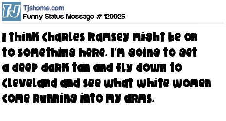 X I think Charles Ramsey might be on to something here. I'm going to get a deep dark tan and fly down to Cleveland and see what white women come running into my arms.