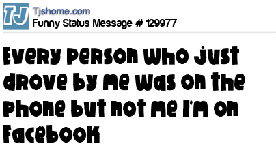 X says Every person who just drove by me was on the phone but not me I'm on Facebook