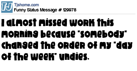 X is I almost missed work this morning because "somebody" changed the order of my "day of the week" undies.
