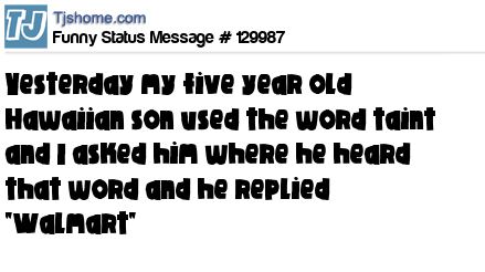 X is yesterday my five year old Hawaiian son used the word taint and I asked him where he heard that word and he replied "Walmart"