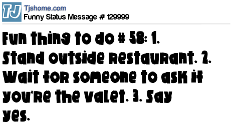 X says Fun thing to do # 58: 1. Stand outside restaurant. 2. Wait for someone to ask if you're the valet. 3. Say yes.