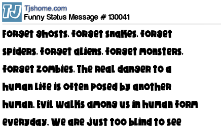 X says Forget ghosts, forget snakes, forget spiders, forget aliens, forget monsters, forget zombies, The real danger to a human life is often posed by another human. Evil walks among us in human form everyday. We are just too blind to see it sometimes.