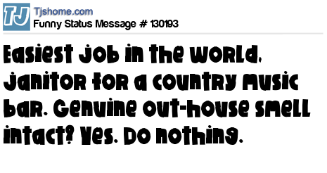 X says Easiest job in the world, janitor for a country music bar. Genuine out-house smell intact? Yes. Do nothing.