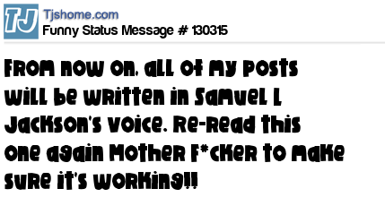 X From now on, all of my posts will be written in Samuel L Jackson's voice. Re-read this one again Mother F*cker to make sure it's working!!