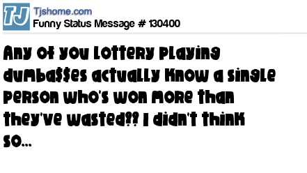X Any of you lottery playing dumba$$es actually know a single person who's won more than they've wasted?? I didn't think so...