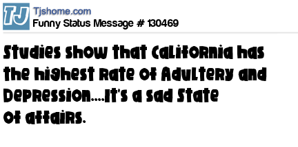 - # 140548 Apparently, California has the highest rate of Adultery and Depression. It's a sad State of affairs....