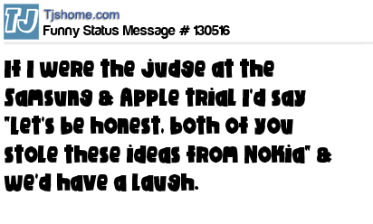 X says If I were the judge at the Samsung & Apple trial I'd say "Let's be honest, both of you stole these ideas from Nokia" & we'd have a laugh.