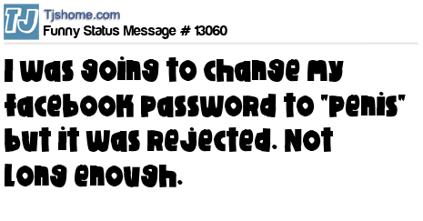 - # 33863 I think Fb is stupid. Last time I tried changing my password to penis and Fb said it 'wasn't long enough'. How the hell do they know?