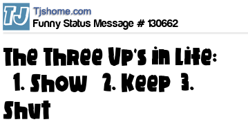 X says The Three Up's in life: 1. Show 2. Keep 3. Shut