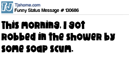 X says This morning, I got robbed in the shower by some soap scum.