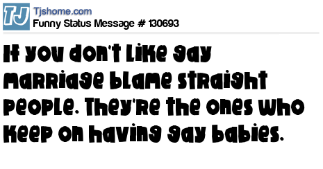 - # 7041 If you don't like gay people... blame the str8 people...they're the ones who keep having gay babies.
