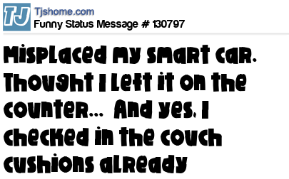 - # 131578 Misplaced my smart car. Thought I left it on the counter... And yes, I checked in the couch cushions already!