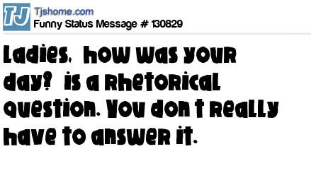 X says Ladies, “how was your day?” is a rhetorical question. You don’t really have to answer it.