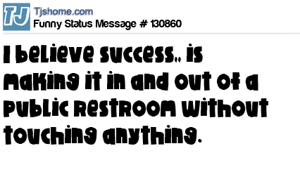 X I believe success,, is making it in and out of a public restroom without touching anything.