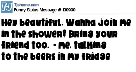 X says Hey beautiful. Wanna join me in the shower? Bring your friend too. - me, talking to the beers in my fridge
