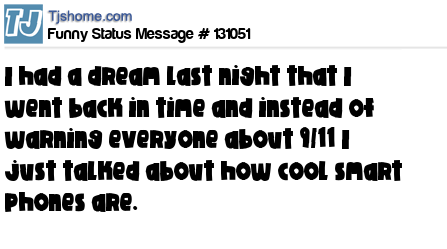 X says I had a dream last night that I went back in time and instead of warning everyone about 9/11 I just talked about how cool smart phones are.