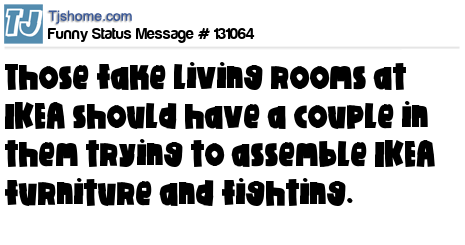 X is Those fake living rooms at IKEA should have a couple in them trying to assemble IKEA furniture and fighting.