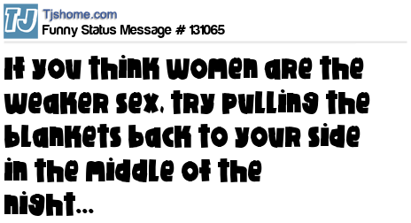 - # 196478 Any man that believes women are "the weaker sex," has never tried to reclaim his half of the blankets on a cold winter's night...