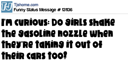 X says I'm curious: Do girls shake the gasoline nozzle when they're taking it out of their cars too?