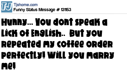 X is Hunny... You dont speak a lick of English.. But you repeated my coffee order perfectly! Will you marry me!