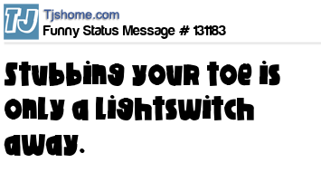 - # 109024 I think the worst part about stubbing your toe is knowing a few seconds later the pain will come.