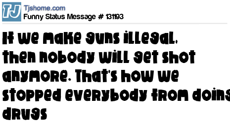 - # 131771 If we make guns illegal, then nobody will get shot anymore... That's how we stopped everybody from doing drugs
