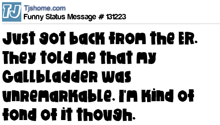 X is Just got back from the ER. They told me that my Gallbladder was unremarkable. I'm kind of fond of it though.