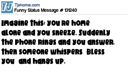 X is Imagine this: you’re home alone and you sneeze. Suddenly the phone rings and you answer, then someone whispers “Bless you” and hangs up.