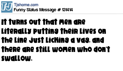 X says It turns out that men are literally putting their lives on the line just licking a vag, and there are still women who don't swallow.