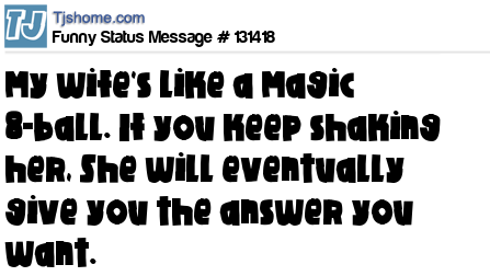 X is My wife's like a Magic 8-ball. If you keep shaking her, She will eventually give you the answer you want.