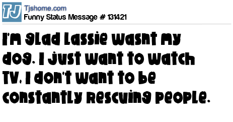 X is I'm glad Lassie wasnt my dog. I just want to watch TV, I don't want to be constantly rescuing people.