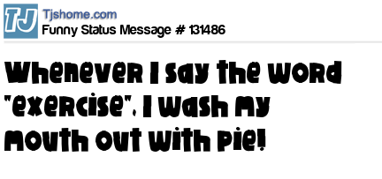 X says Whenever I say the word "exercise", I wash my mouth out with pie!