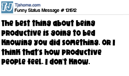 X says The best thing about being productive is going to bed knowing you did something. Or I think that's how productive people feel. I don't know.