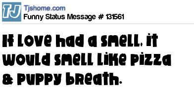 X says If love had a smell, it would smell like pizza & puppy breath.