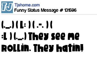 X (._.) ( l: ) ( .-. ) ( :l ) (._.) They see me rollin. They hatin!
