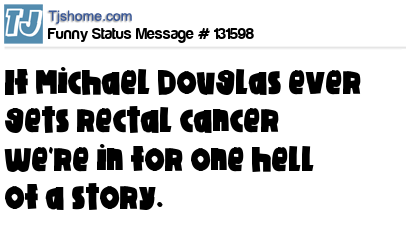 - # 131343 Thanks, Michael Douglas, for ruining the ONLY time I'm not worrying about cancer.